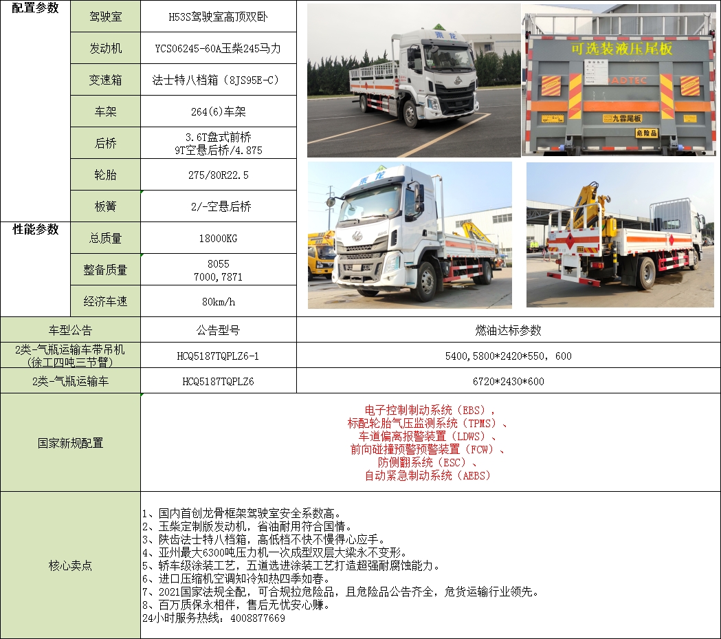 氣瓶運輸車是針對煤氣企業、石油液化企業的氣鋼瓶運輸而開發的專用車。內附困扎帶、防撞條、防靜電等設施,廂頂部不密封。廣泛用于液化石油行業、易燃易爆行業、市內短途配送,安全可靠,方便快捷。