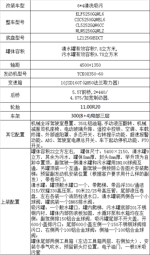 湖北加貝汽車銷售服務有限公司,產品品種多,材質過硬、重工工藝、軍工管理、質量、售后服務可以保證,楚勝CSC5250GQWEL6清洗吸污車(6*4)購買您應該放心!
