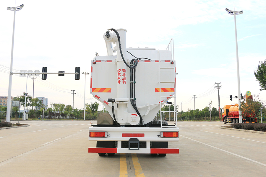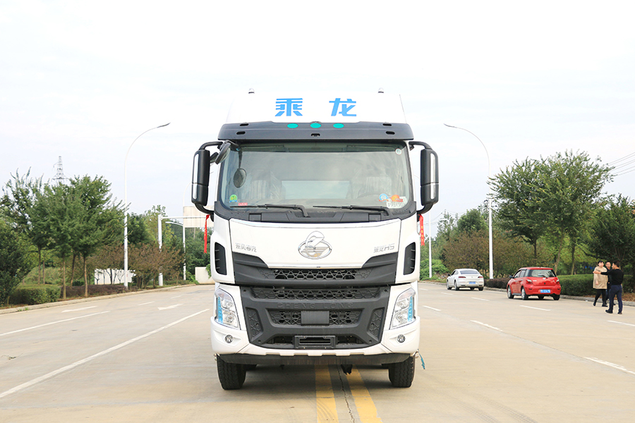 散裝飼料車的飼料罐架設(shè)在卡車的底盤上,罐頂開有進(jìn)料口.頂部的一根螺旋輸送卸料管(俗稱卸料絞龍)則可自由回轉(zhuǎn)和抬升,抬升的仰角可達(dá)60度。運(yùn)輸時(shí),頂部的螺旋管平臥在罐頂;卸料時(shí)則抬起,使管端的出料口與畜禽飼養(yǎng)場(chǎng)貯料罐頂部的進(jìn)料門相接,駕駛室內(nèi)裝有操縱裝置(操縱裝置也可裝置在罐體尾部),卸料時(shí)通過車底的動(dòng)力輸出軸和減速器來驅(qū)動(dòng)螺旋,以完成卸料。目前國(guó)內(nèi)主要推出3T、5T、8T、11T、15T和22T等多個(gè)噸位車型。