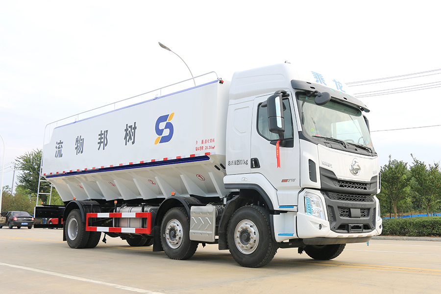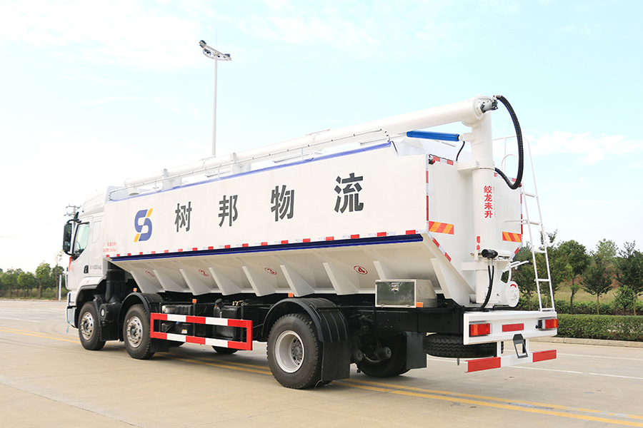 散裝飼料車全稱為散裝飼料運(yùn)輸車。主要用于從飼料廠向畜牧場(chǎng)養(yǎng)禽場(chǎng)及飼料加工用戶或運(yùn)輸散裝飼料成品飼料生產(chǎn)原糧,同時(shí)它也可用來運(yùn)輸某些無(wú)腐蝕性粉粒狀原料,如制藥廠粉料和糧庫(kù)周轉(zhuǎn)。