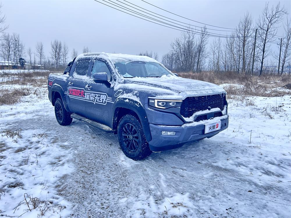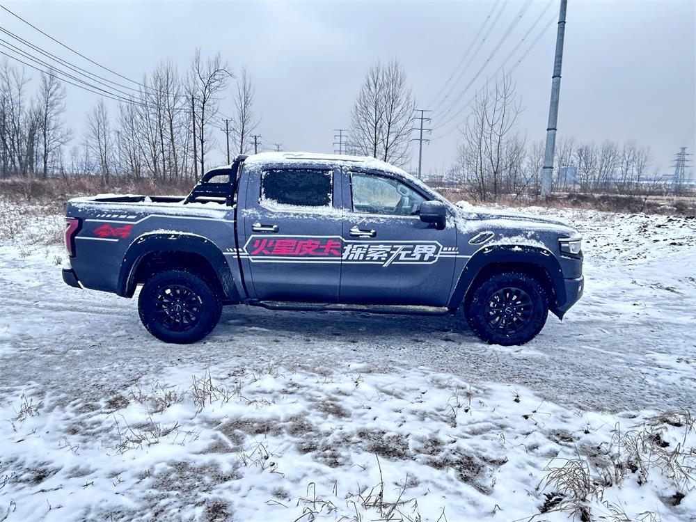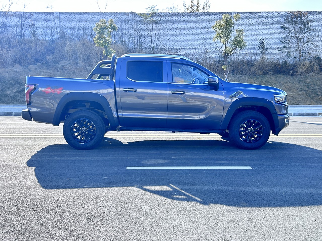 ★全尺寸硬派造型 ① 近2.1m超寬車身、1.65m貨箱、1.7m輪距 ② 整車方正硬朗設計 ③ 帶燈語LED矩陣大燈 ④ 貫穿式帶燈語LED尾燈 ⑤ 3D雕刻尾門裝飾板 ⑥ 大尺寸越野輪眉+車頂行李架 ⑦ 265/70R18大尺寸全地形越野胎 ⑧ 一體式門把手+觸摸感應解鎖 ⑨ 尾門液壓緩降 ⑩ 伸縮式蹬車踏步 ? 主動進氣格柵(行業(yè)首用) ? 多種個性化車身顏色