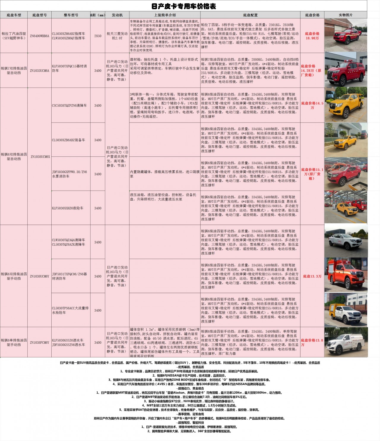 湖北加貝汽車銷售服務有限公司,產品品種多,材質過硬、重工工藝、軍工管理、質量、售后服務可以保證,東風日產2024年皮卡價格表購買您應該放心!