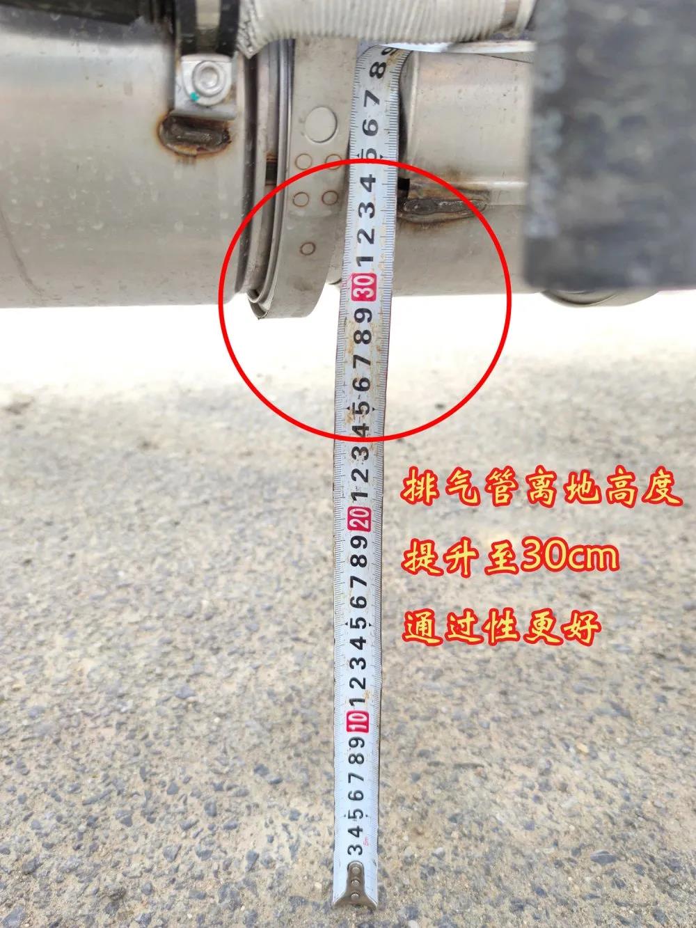 尾氣排放裝置離地間隙提高,通過性更好,合規合法車型。